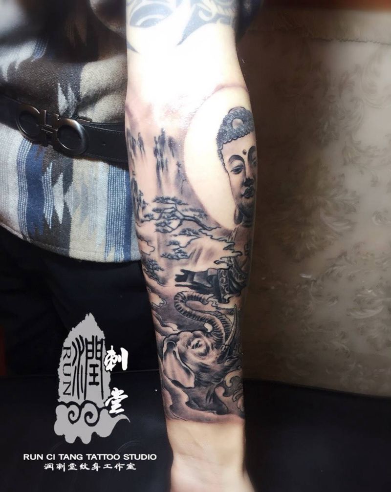 当前位置: 首页 >甘肃省兰州市纹身店-兰州润刺青工作室纹身图案>大日如来纹身图片_成品手臂传统宗教纹身图案