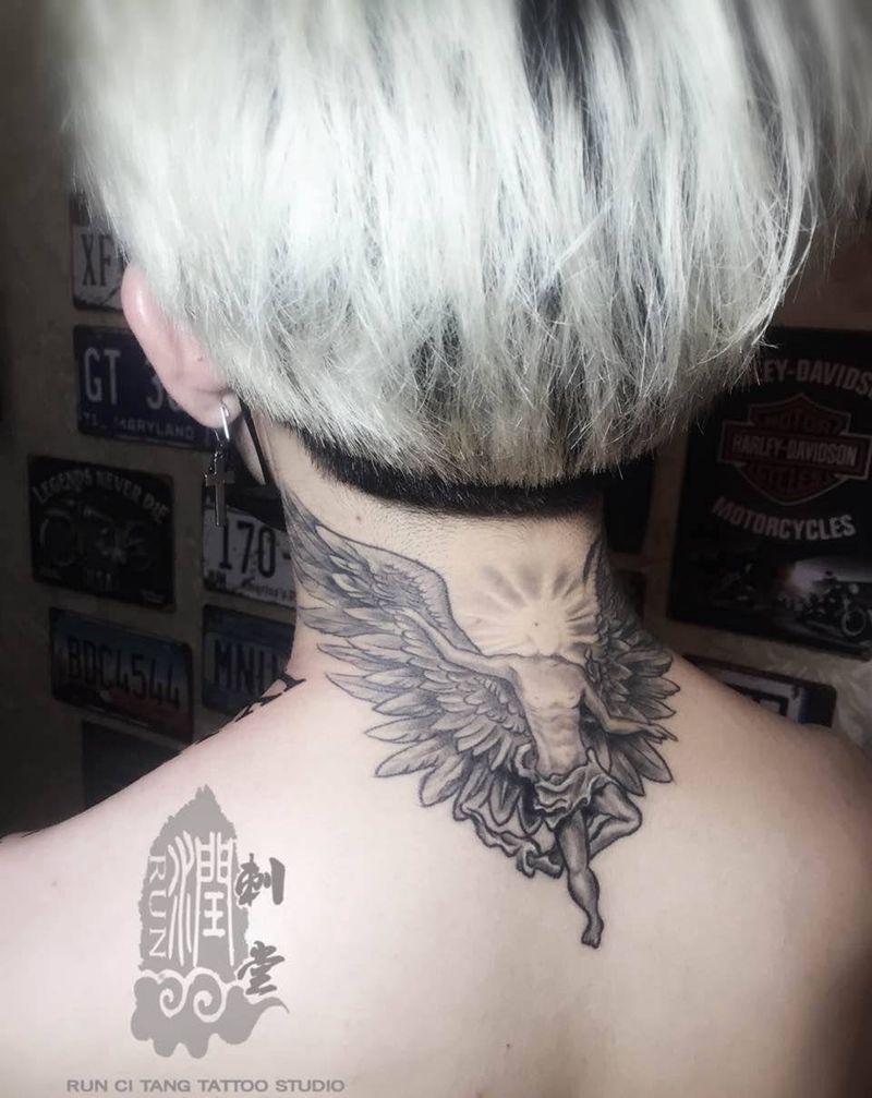 恢复半年的效果,买家秀纹身图片_成品颈部背部肩部欧美鬼神字符人物宗教纹身图案