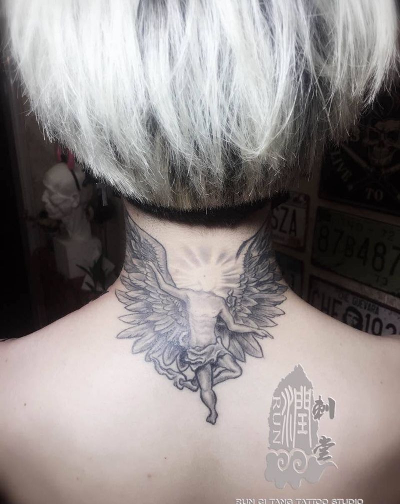 恢复半年的效果,买家秀纹身图片_成品颈部背部肩部欧美鬼神字符人物宗教纹身图案