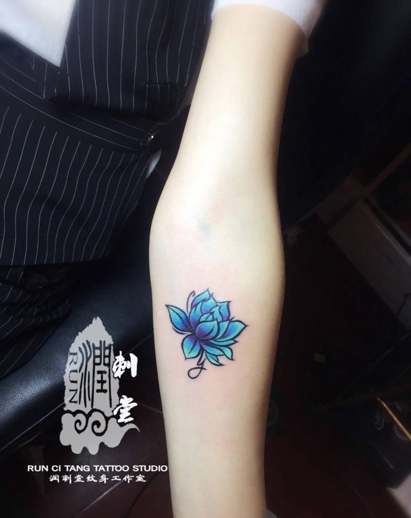 当前位置: 首页 >甘肃省兰州市纹身店-兰州润刺青工作室纹身图案>蓝莲花纹身图片_成品手臂传统清新植物原创纹身图案