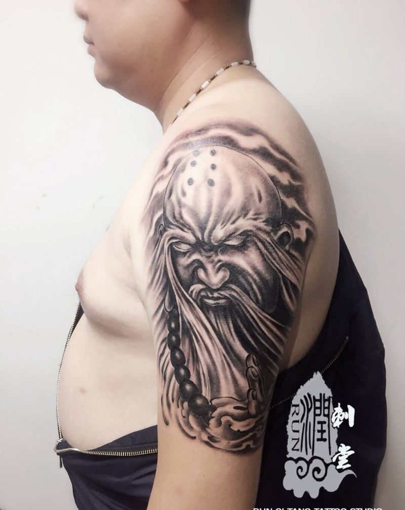 润刺青出品#罗汉#纹身图片_成品手臂手部人物鬼神宗教纹身图案