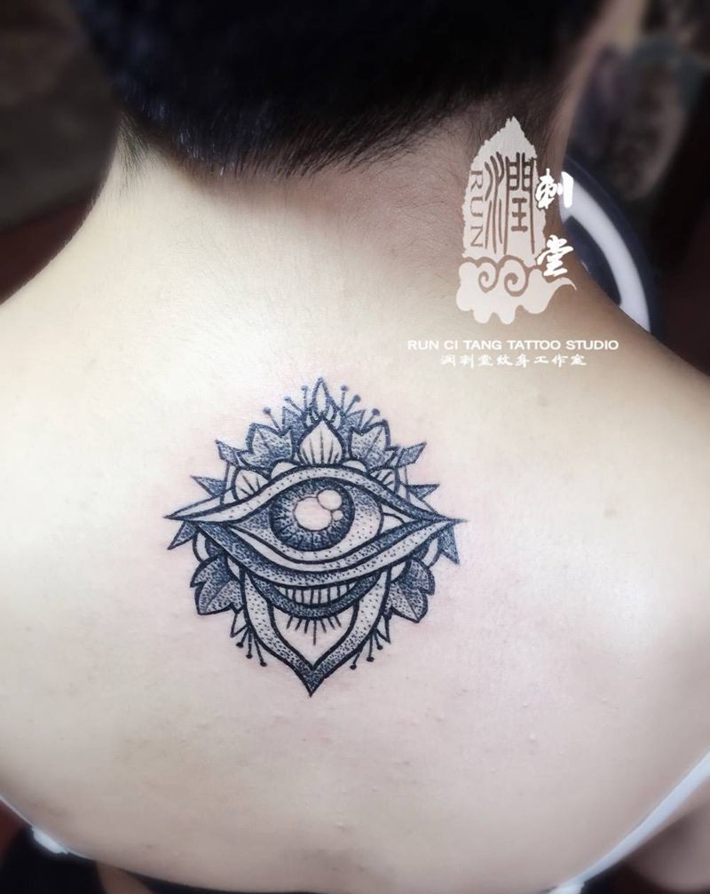 点刺眼睛纹身图片_成品颈部背部欧美清新原创纹身图案