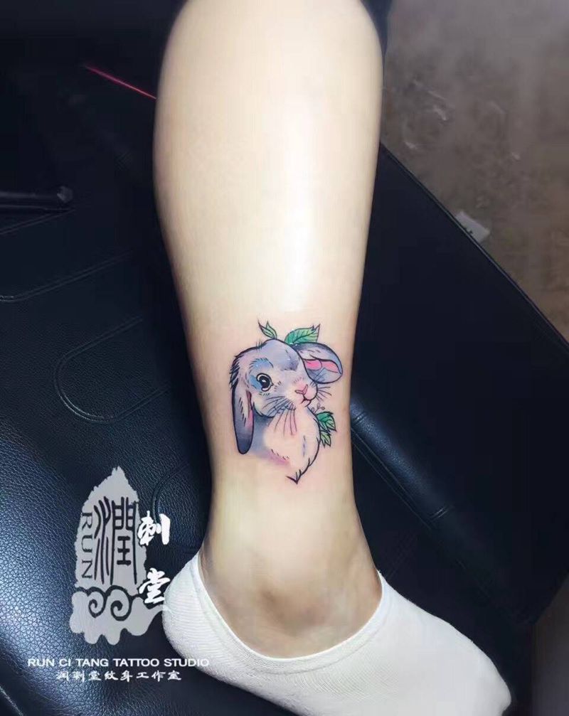 兔纹身图片_成品脚部腿部清新贴纸动物纹身图案