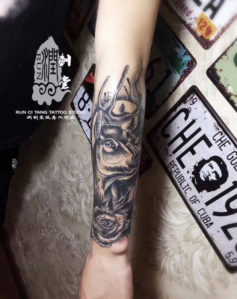 当前位置: 首页 >甘肃省兰州市纹身店-兰州润刺青工作室纹身图案>鹿纹身图片_成品手部手臂欧美图腾字符动物植物纹身图案
