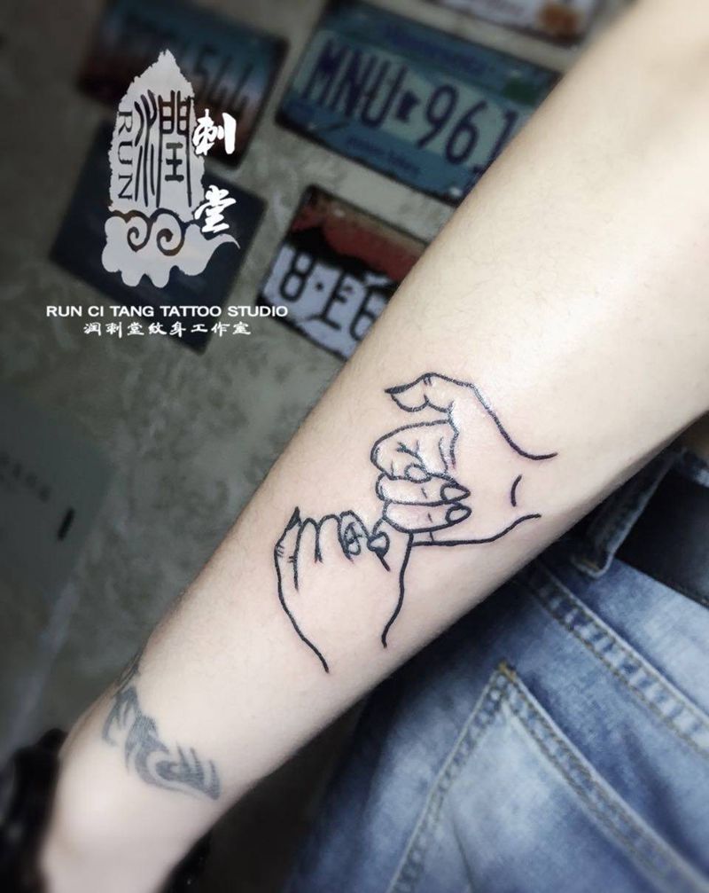 润刺青出品#手拉手#纹身图片_成品手部手臂欧美清新情侣几何字符纹身图案
