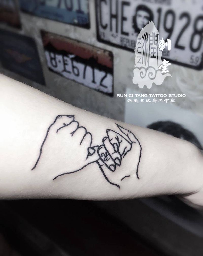润刺青出品#手拉手#纹身图片_成品手部手臂欧美清新情侣几何字符纹身图案