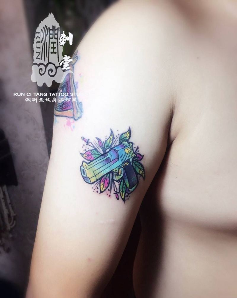 当前位置: 首页 >甘肃省兰州市纹身店-兰州润刺青工作室纹身图案>School 手枪纹身图片_成品手臂欧美静物纹身图案