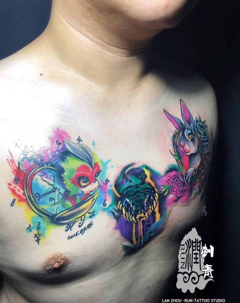 • 男性大花胸_42张优秀的男性大花胸纹身图案图片