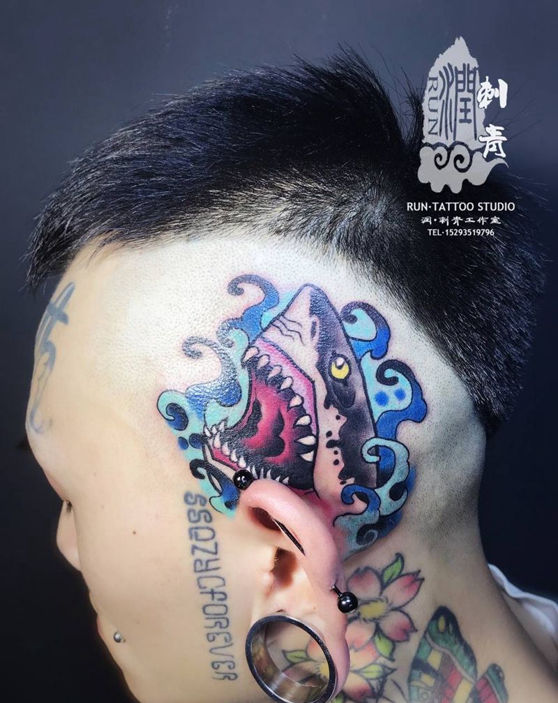 当前位置: 首页 >甘肃省兰州市纹身店-兰州润刺青工作室纹身图案>润刺青出品#鲨鱼#纹身图片_成品颈部欧美动物纹身图案