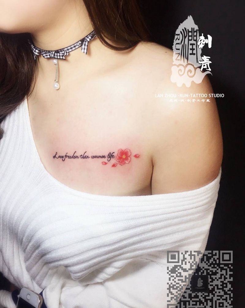 字母与花纹身图片_成品胸部清新字符植物纹身图案