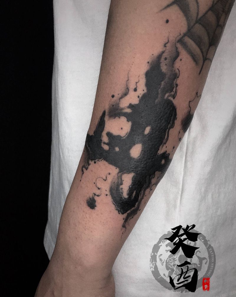 黑灰满背纹身图案