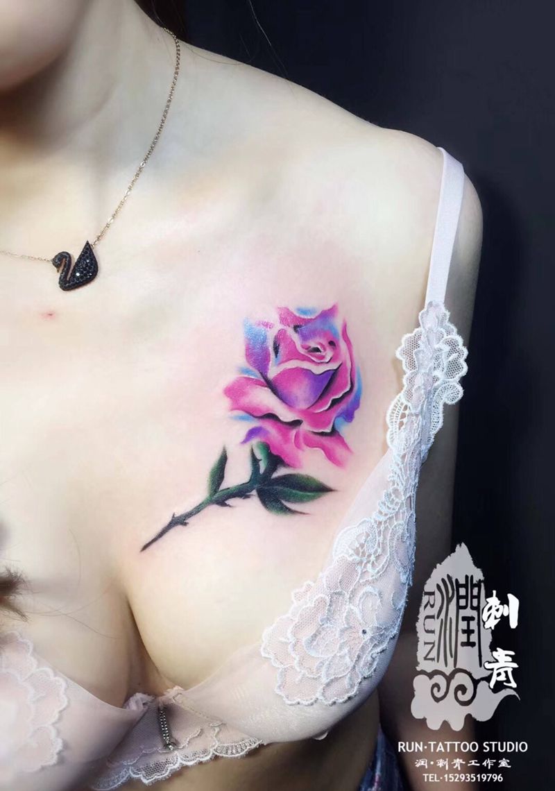• 女性大花胸纹身_43张霸气漂亮的女性大花胸纹身图案作品