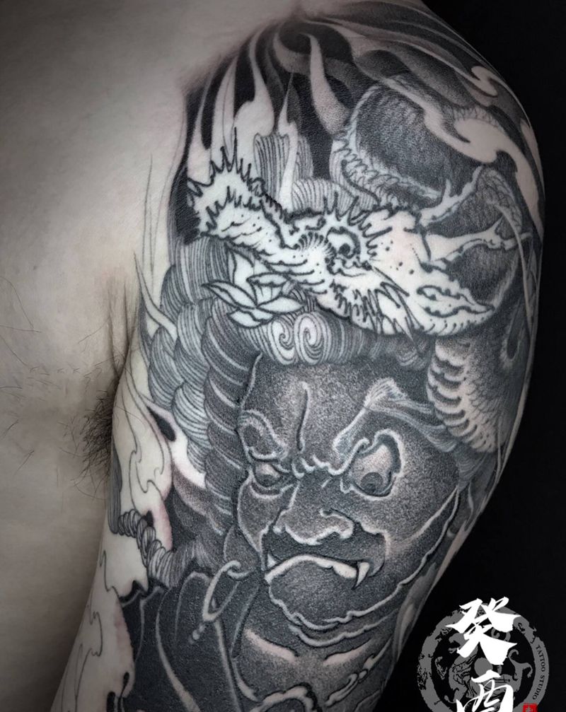不动明王(未完)纹身图片_手臂新传统纹身图案