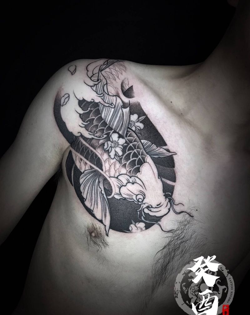 锦鲤(未完)纹身图片_胸部新传统纹身图案