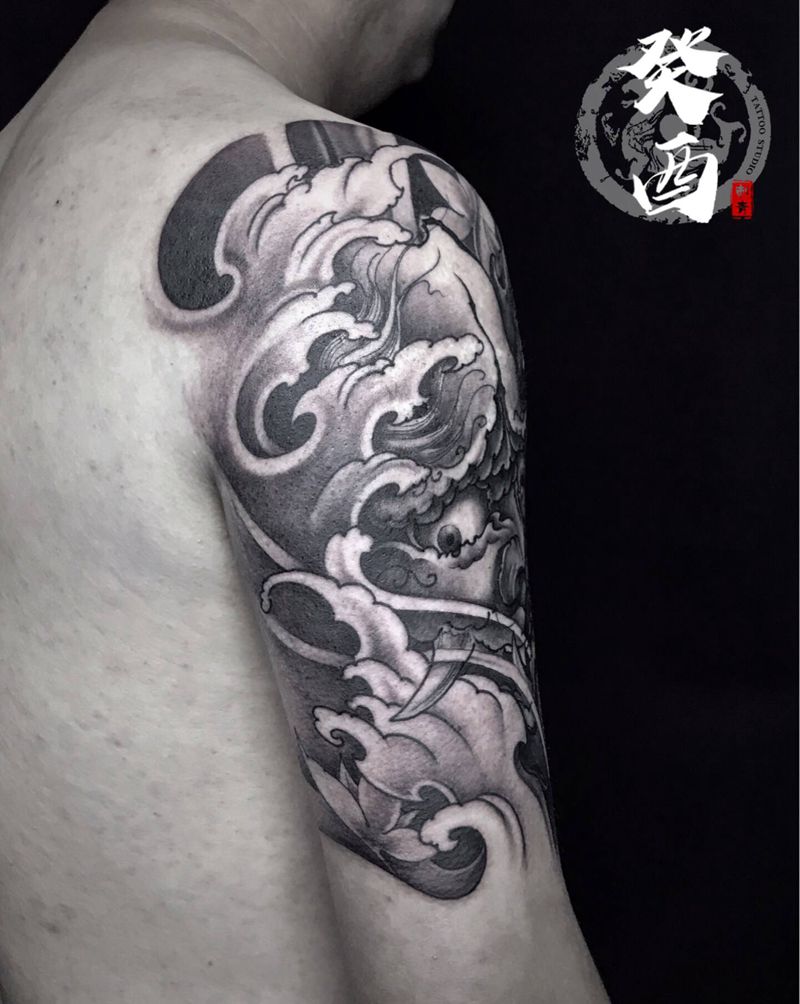 • 纹身吧推荐的披肩图腾半胛纹身图案作品展示