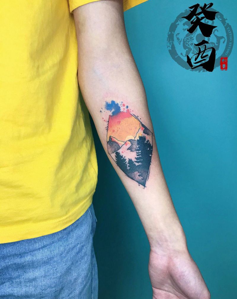 当前位置: 首页 >甘肃省兰州市纹身店-癸酉刺青纹身图案>小清新纹身图片_手臂水彩点刺纹身图案