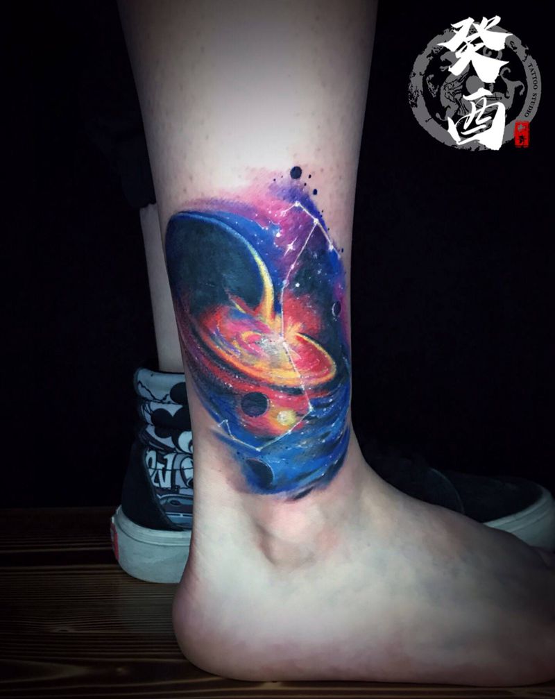 当前位置: 首页 >甘肃省兰州市纹身店-癸酉刺青纹身图案>天蝎座(遮盖)纹身图片_腿部欧美写实水彩遮盖纹身图案