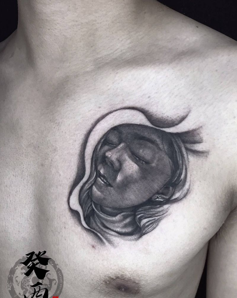 当前位置: 首页 >甘肃省兰州市纹身店-癸酉刺青纹身图案>肖像纹身图片_胸部欧美写实纹身图案