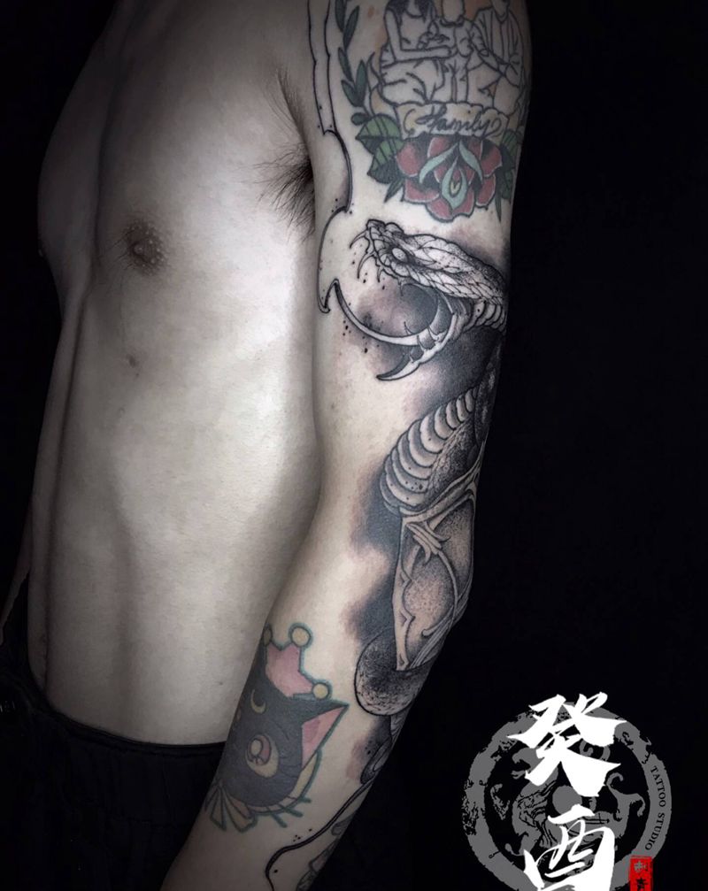 蛇与盾(未完)纹身图片_手臂New School纹身图案