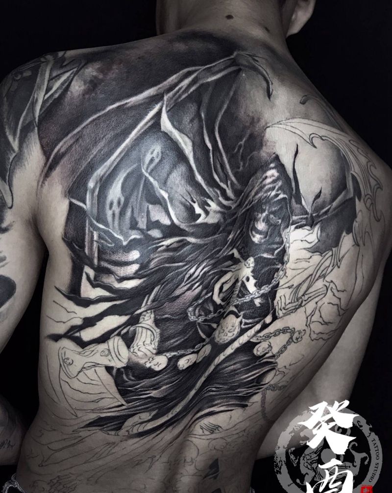 死神(未完)纹身图片_背部欧美写实纹身图案