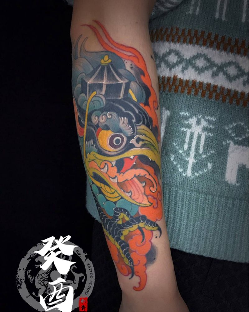当前位置: 首页 >甘肃省兰州市纹身店-癸酉刺青纹身图案>乌天狗纹身图片_手臂New School纹身图案