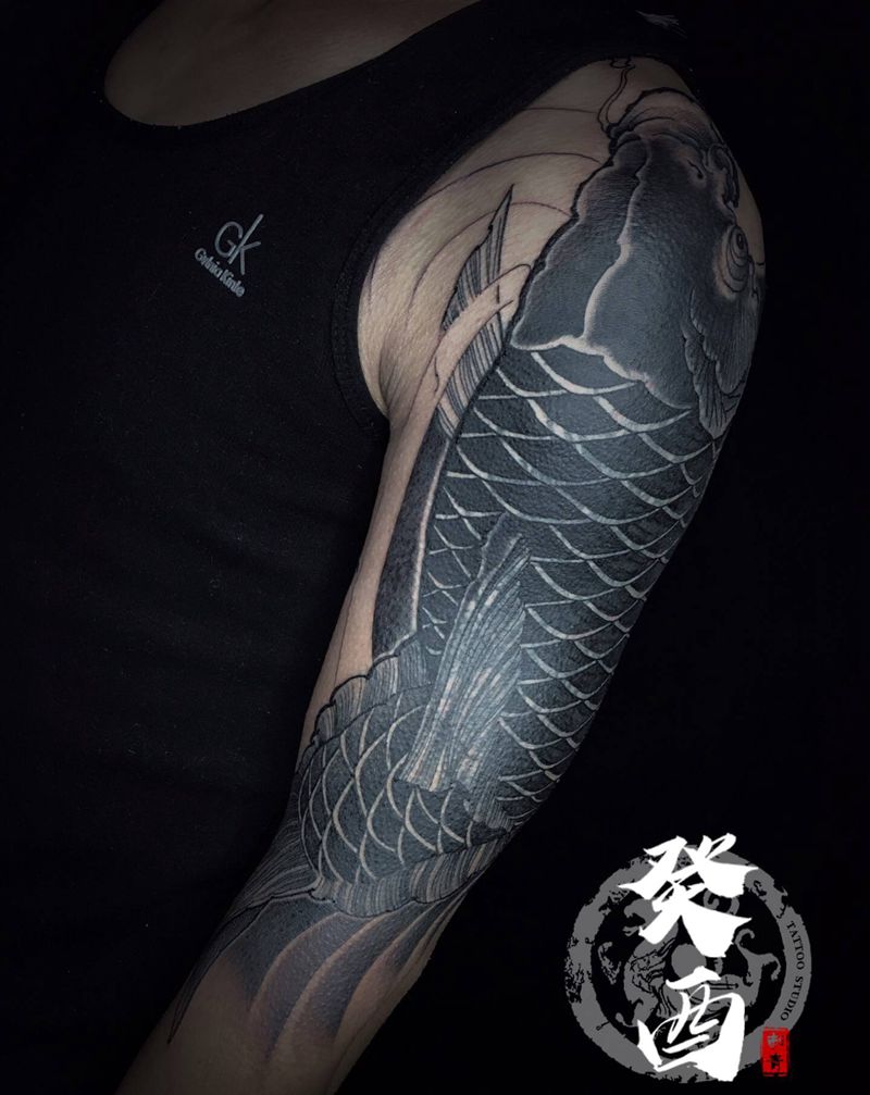 当前位置: 首页 >甘肃省兰州市纹身店-癸酉刺青纹身图案>鲤鱼(遮盖未完)纹身图片_手臂新传统遮盖纹身图案