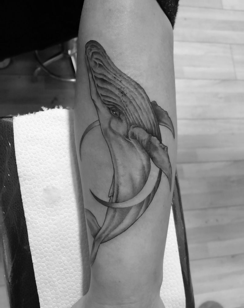 鲸鱼纹身图片_手臂欧美写实鲸鱼纹身图案