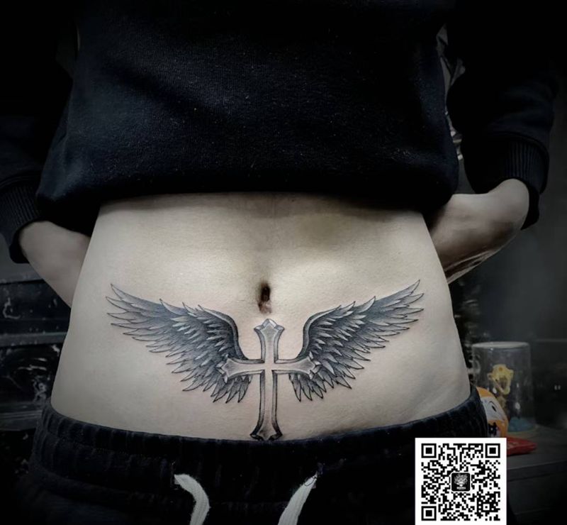 翅膀纹身图片_腹部纹身图案
