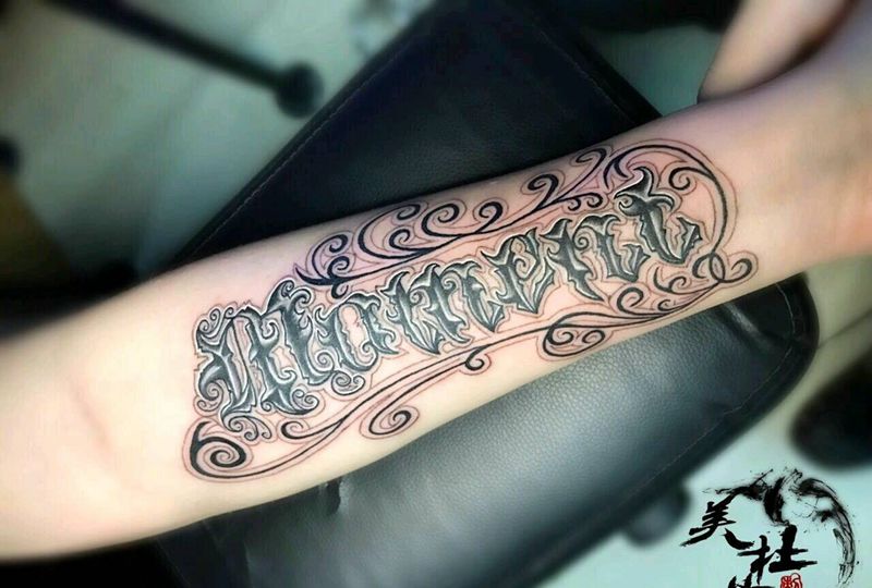 当前位置: 首页 >甘肃省兰州市纹身店-兰州美杜莎刺青纹身图案>原创字母纹身图片_手臂欧美字符原创成品手稿纹身图案
