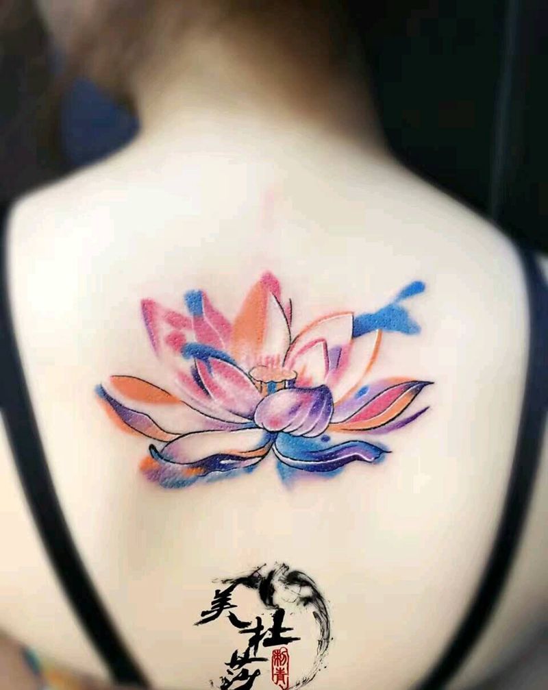 当前位置: 首页 >甘肃省兰州市纹身店-兰州美杜莎刺青纹身图案>炫彩莲花纹身图片_背部传统清新贴纸植物静物生活成品纹身图案