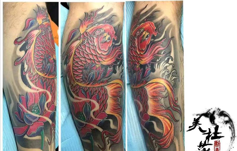 当前位置: 首页 >甘肃省兰州市纹身店-兰州美杜莎刺青纹身图案>锦鲤纹身图片_腿部传统动物生活成品纹身图案