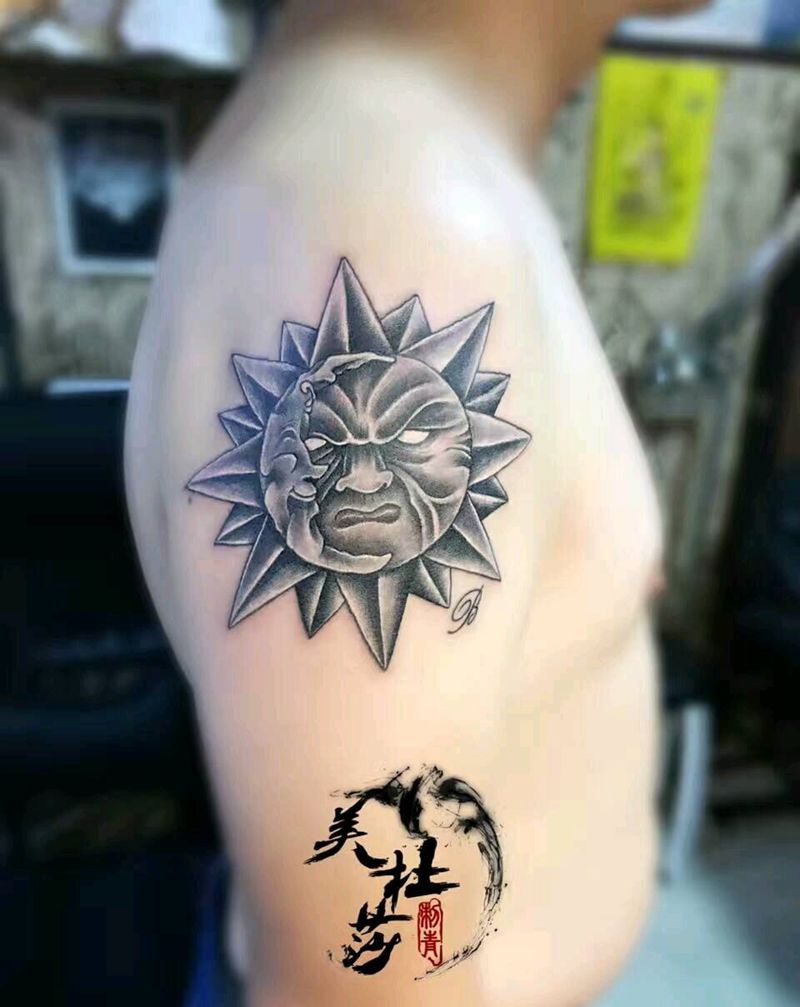 当前位置: 首页 >甘肃省兰州市纹身店-兰州美杜莎刺青纹身图案>日月纹身图片_肩部手臂欧美贴纸静物生活成品纹身图案
