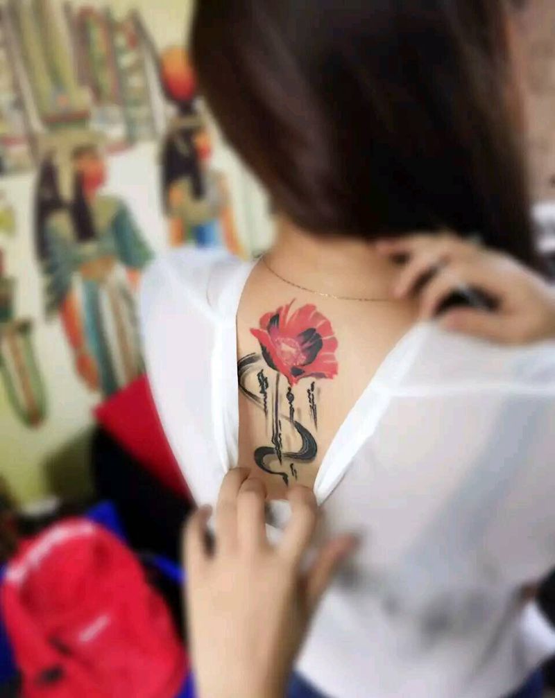 罂粟花纹身图片_背部清新贴纸植物生活成品纹身图案