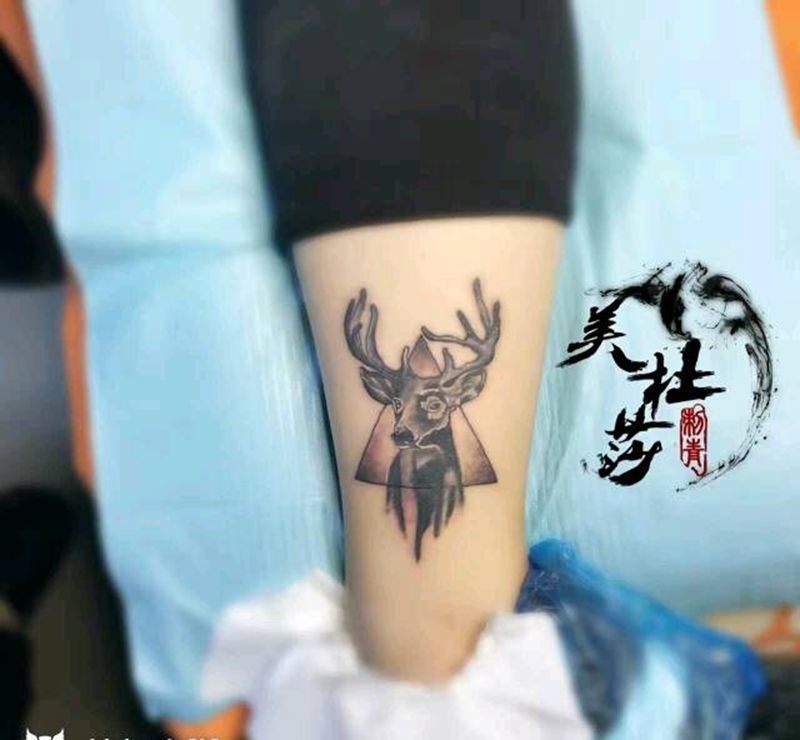 鹿纹身图片_腿部欧美动物原创生活成品纹身图案