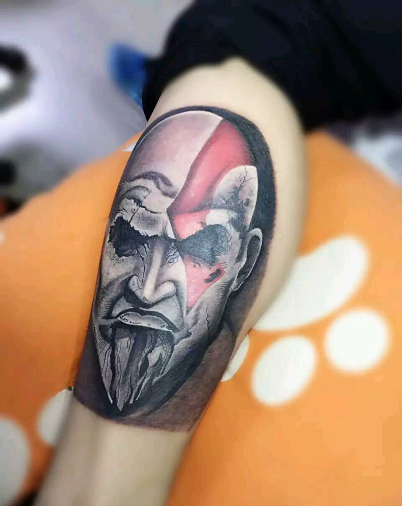 当前位置: 首页 >甘肃省兰州市纹身店-兰州美杜莎刺青纹身图案>战神奎托斯纹身图片_手臂欧美人物生活成品纹身图案