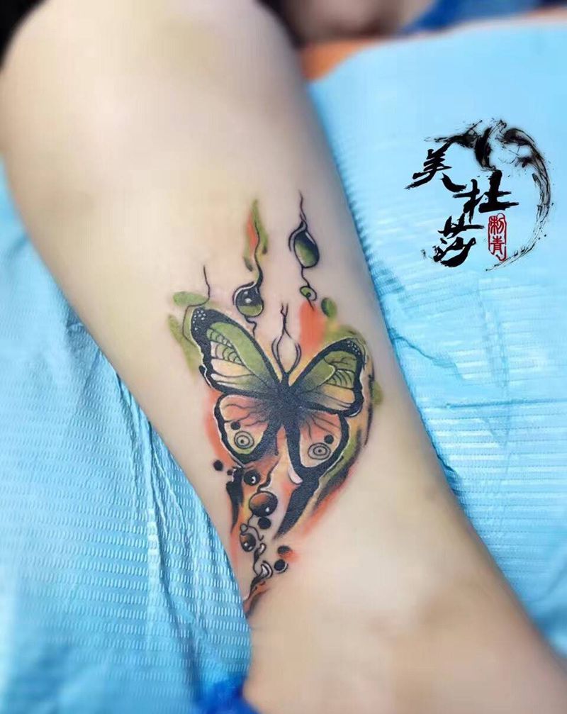 当前位置: 首页 >甘肃省兰州市纹身店-兰州美杜莎刺青纹身图案>彩彩的蝴蝶。纹身图片_成品腿部清新植物动物贴纸纹身图案