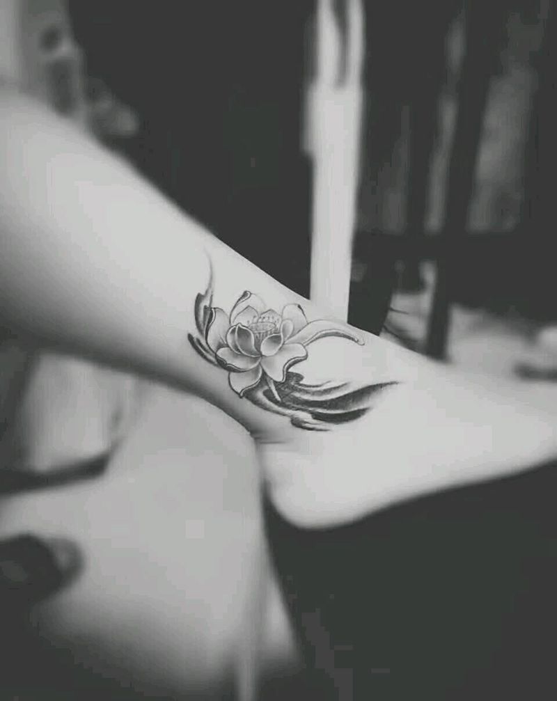 莲花纹身图片_脚部清新国画贴纸植物生活成品纹身图案