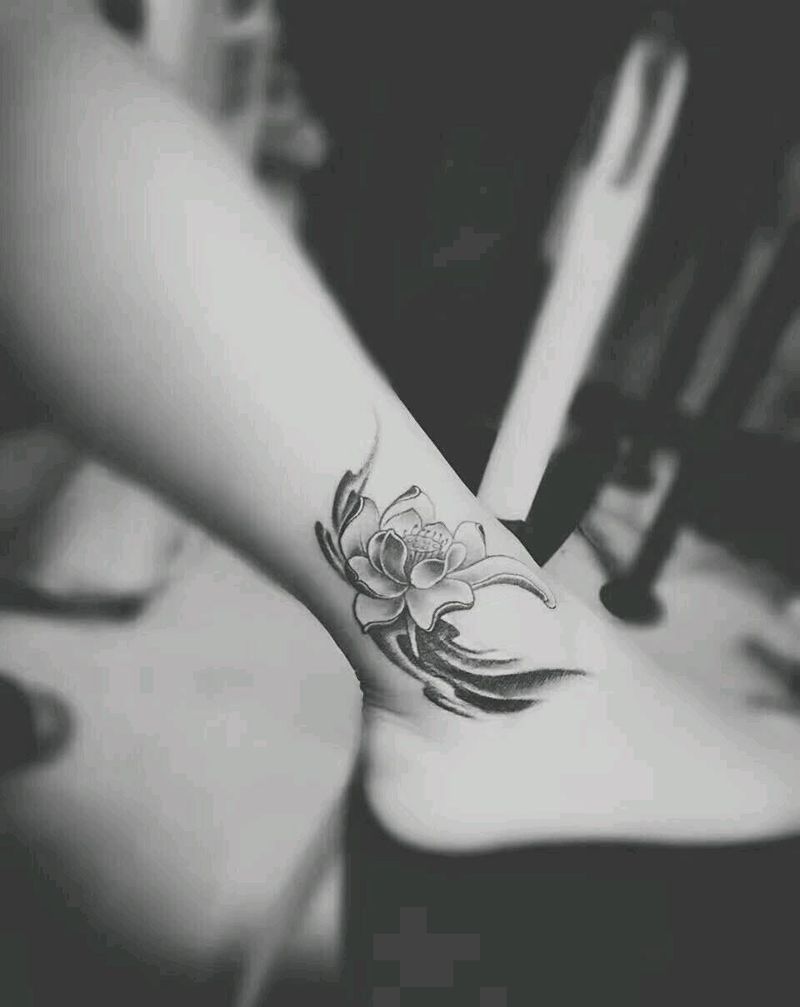 莲花纹身图片_脚部清新国画贴纸植物生活成品纹身图案