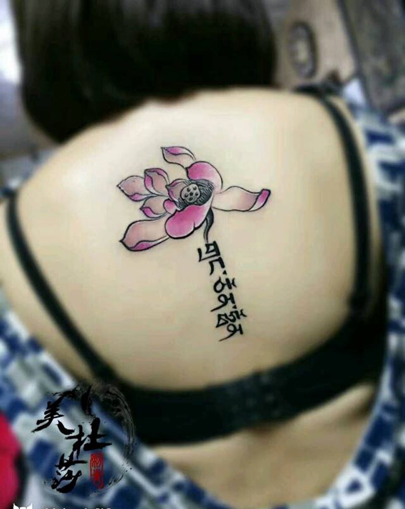 莲花纹身图片_背部传统清新植物静物生活纹身图案