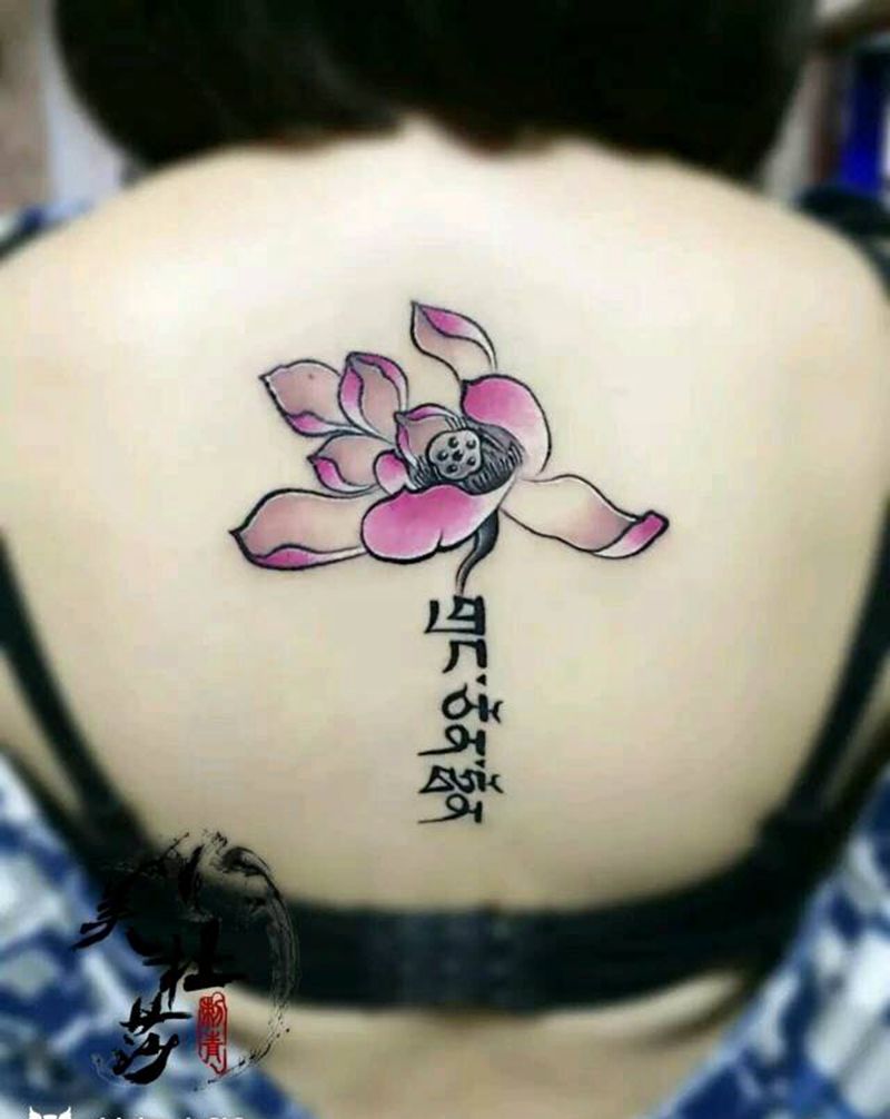 莲花纹身图片_背部传统清新植物静物生活纹身图案