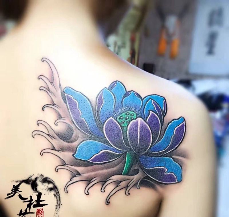 一组15张莲花纹身手