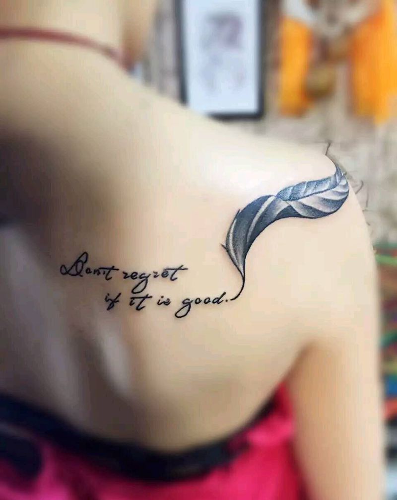 羽毛 字纹身图片_肩部背部清新贴纸静物生活成品纹身图案