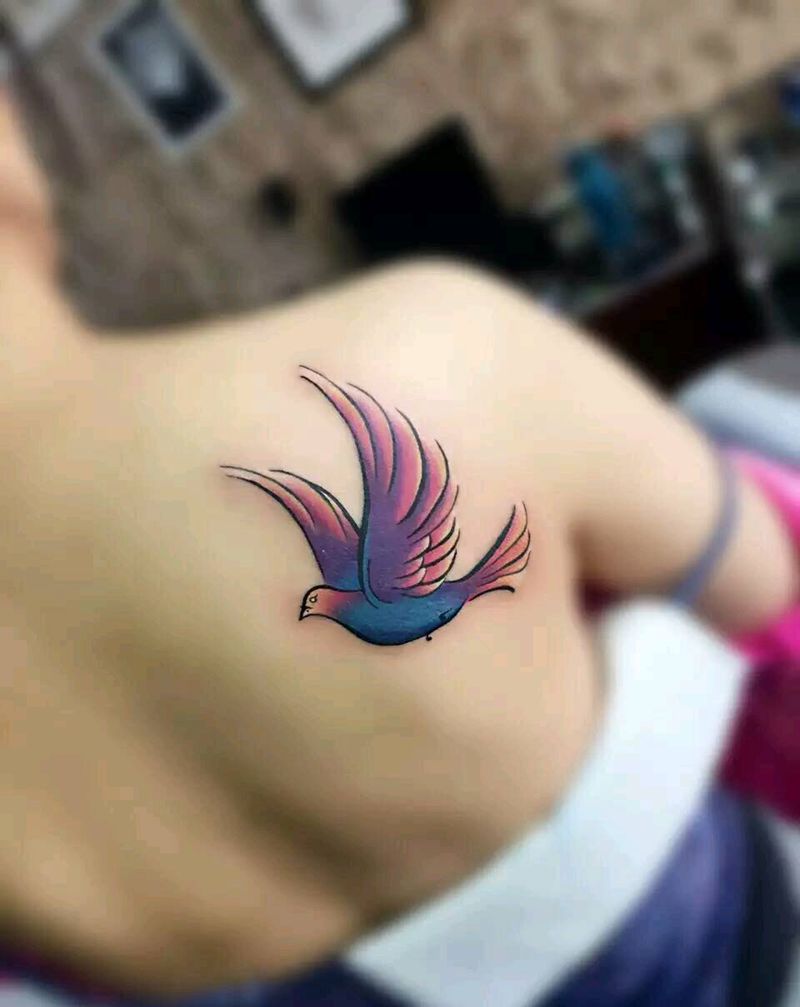 燕子纹身图片_肩部背部清新动物生活成品纹身图案
