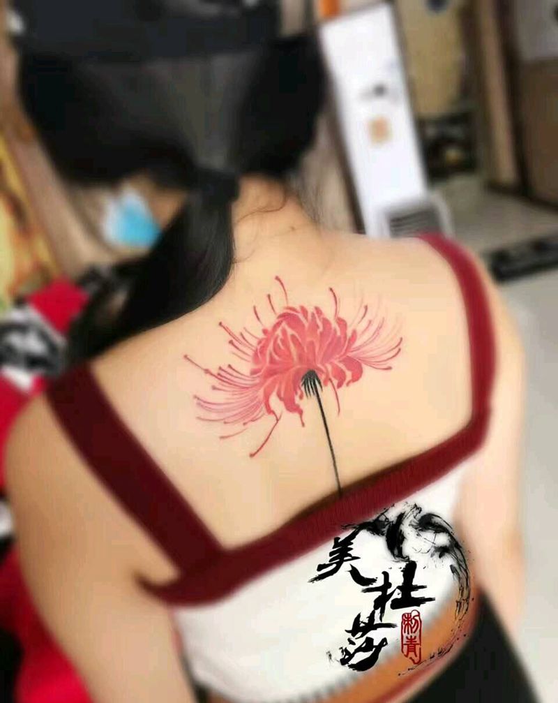 彼岸花纹身图片_背部清新植物原创生活成品纹身图案
