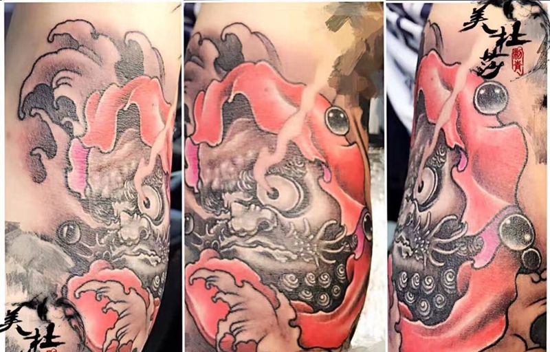• T网红王老大花腿龙纹身图片_腿部新传统纹身图案