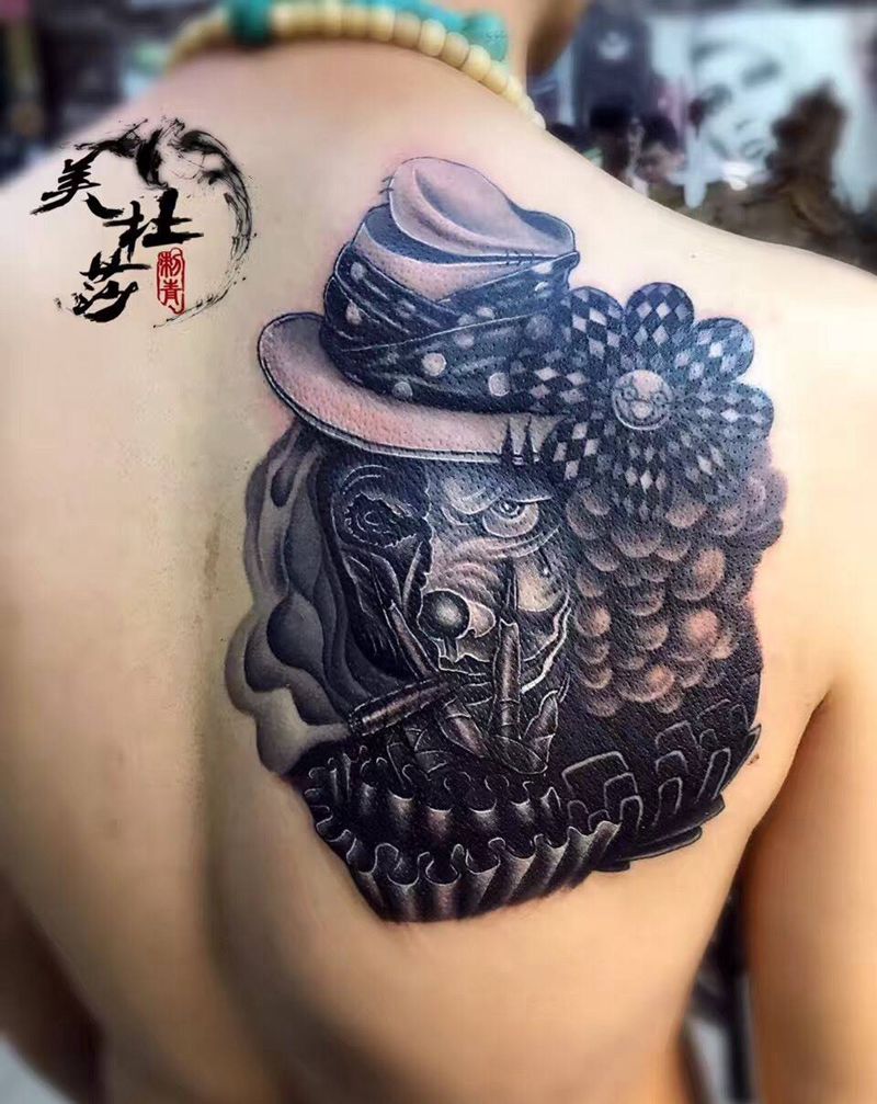 • 黑灰满背纹身图案