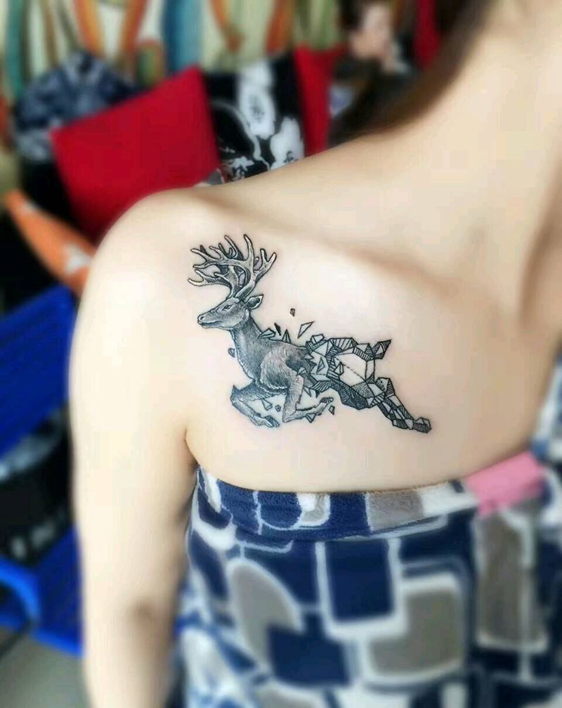 几何鹿纹身图片_肩部背部欧美几何动物生活成品纹身图案
