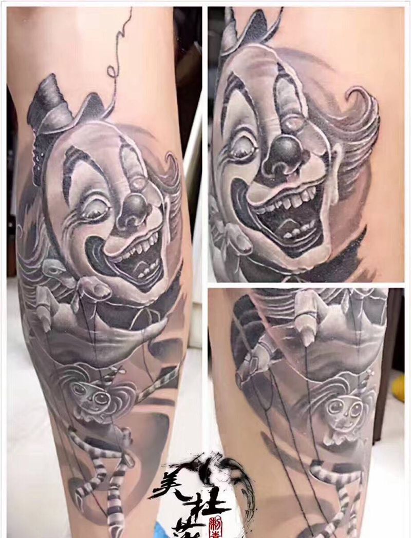 • T包小腿吹火男+阿多福纹身图片_腿部老传统新传统吹火男阿