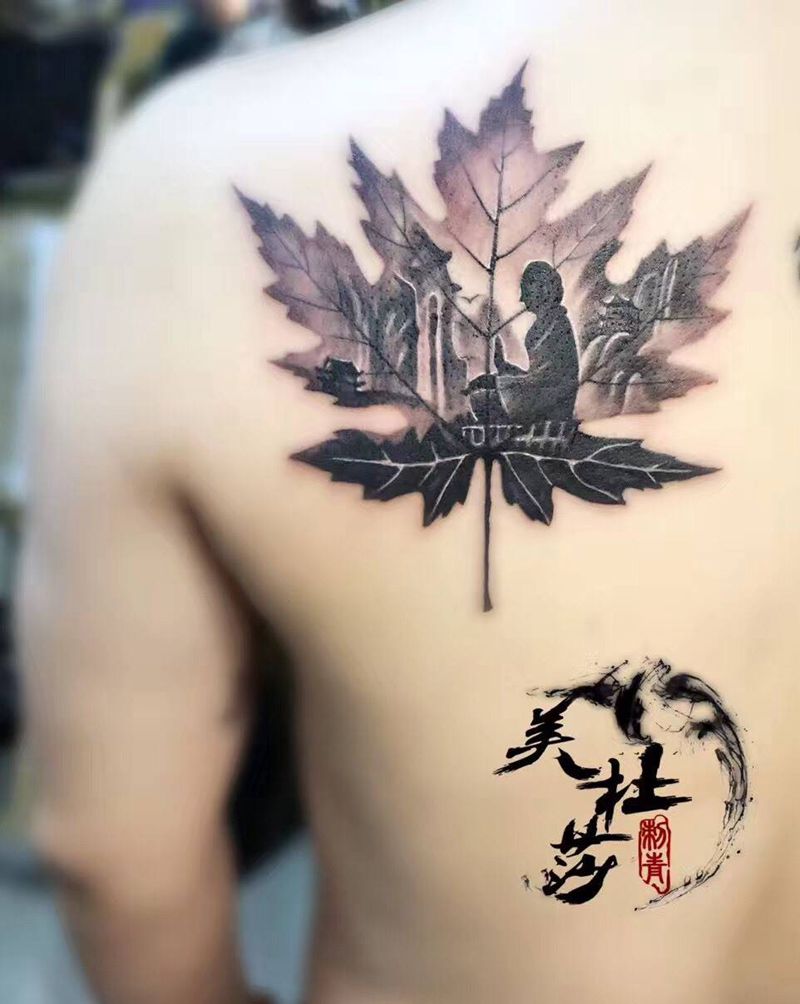 一花一世界,一叶一菩提纹身图片_成品背部传统贴纸人物植物纹身图案