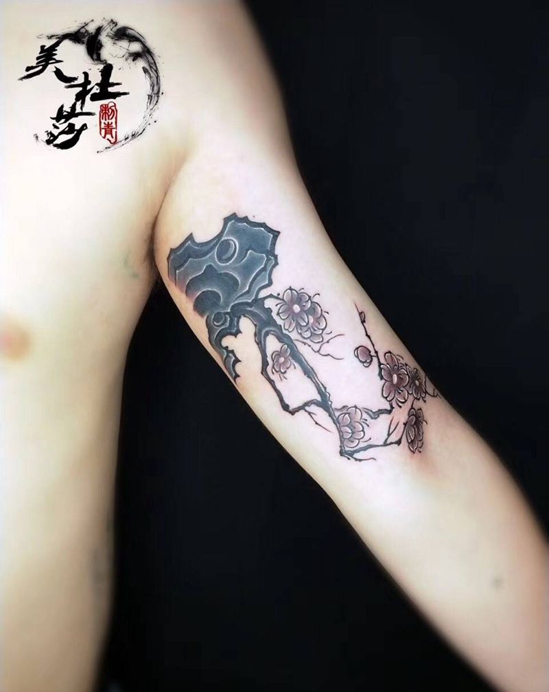 当前位置: 首页 >甘肃省兰州市纹身店-兰州美杜莎刺青纹身图案>梅花。纹身图片_成品手臂国画植物原创纹身图案